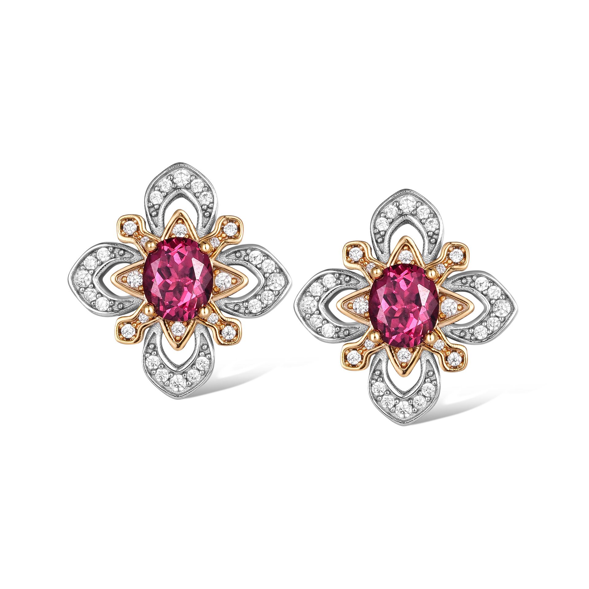 Inspired by a blooming four-petal flower, this design features a sunburst pattern outlined in rose gold, cradling a deep magenta pyrope garnet at its center. Surrounding layers of intricately pierced silver petals unfold like lace, weaving together rich red, warm gold, cool silver, and sparkling diamonds—a dialogue between classical grandeur and modern minimalism.